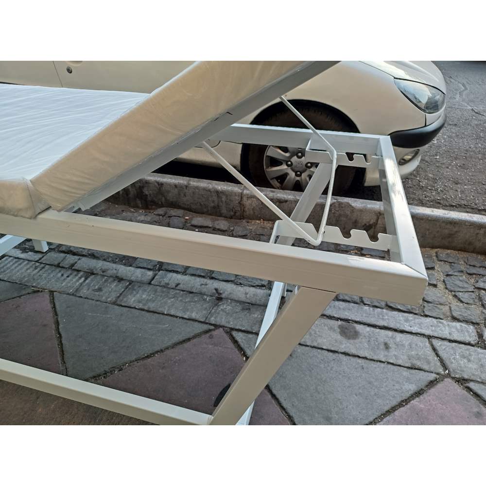 تخت معاینه پایه ثابت سر متحرک تاشو پایه ام M با بدنه و شاسی بسیار مستحکم با تحمل وزن بسیار بالا جهت استفاده در کلینیک های پزشکی به منظور انجام ویزیت و معاینه پزشک و تزریقات و سرم تراپی در رنگ های مختلف در تجهیزات پزشکی آرمان درمان.