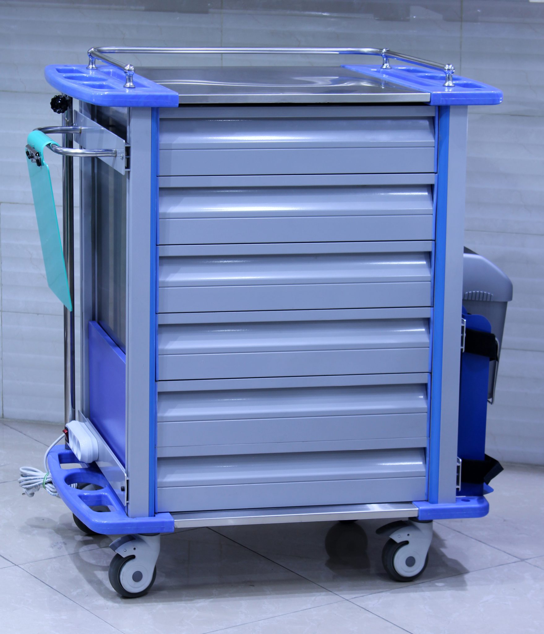 ترالی اورژانس ای بی اس ABS فایبر TR6 شش کشوجهت استفاده در مراکز درمانی برای قرار دادن وسایل و دارو های احیا و تجهیزات درمانی با فضایی بسیار عالی برای دسترسی بهتر و بیشتر پزشکان و کادر درمان همراه با گارانتی و بهترین قیمت خرید در آرمان درمان.