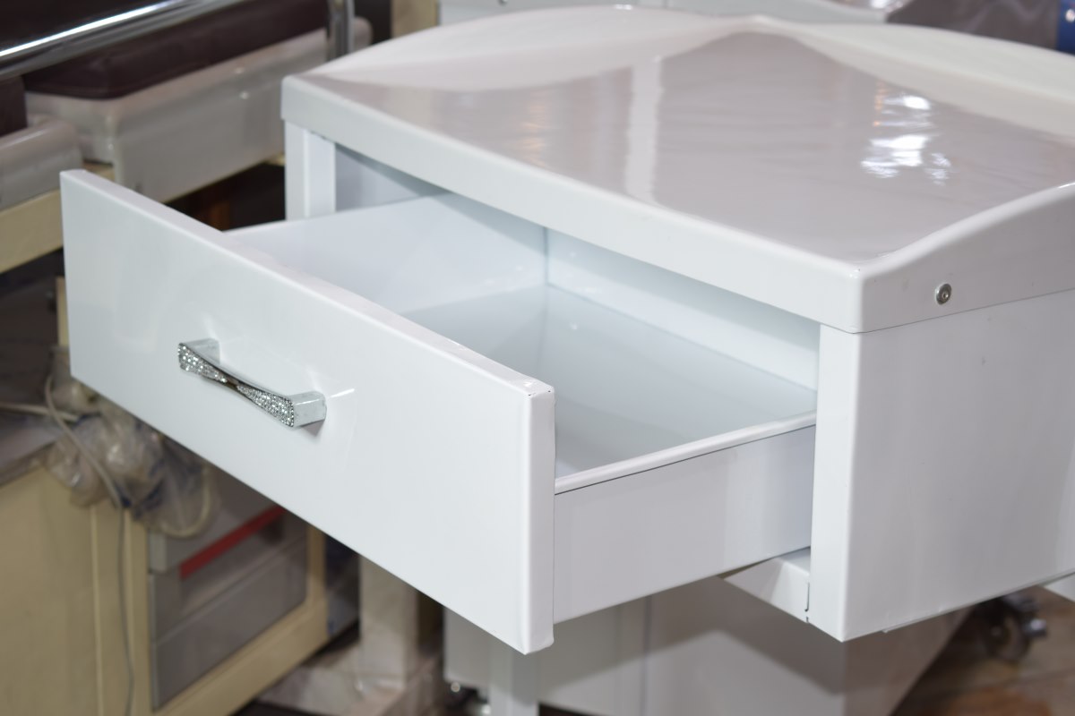 دارای کشوهای بسیار مستحکم جهت قرار دادن جایگذاری وسایل و تجهیزات پزشکی سنگین وزن.