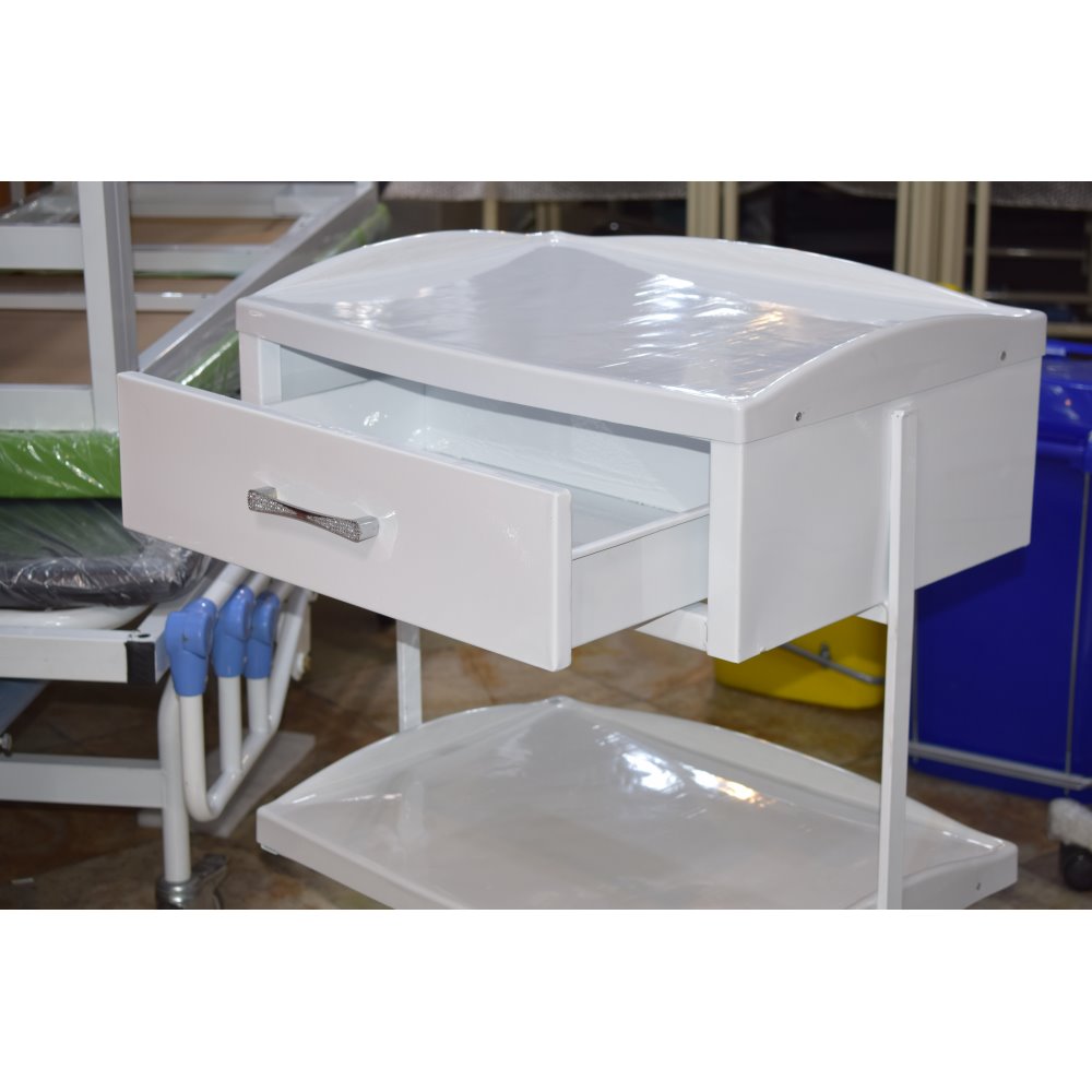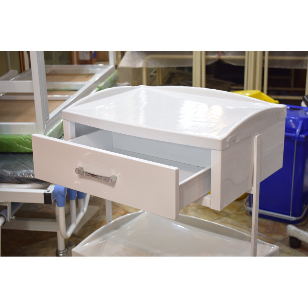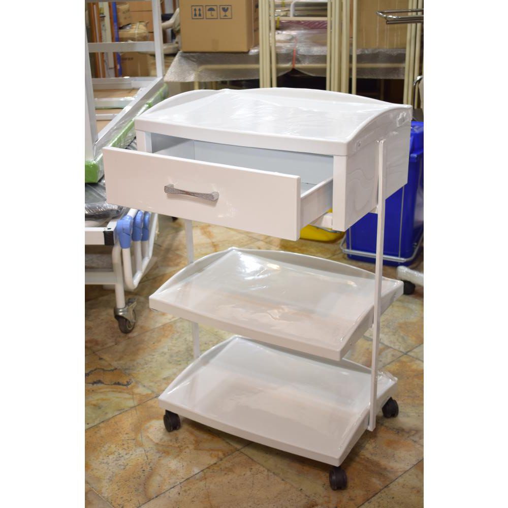 ترالی یک کشو سه طبقه TR31 جهت قرار دادن وسایل و لوازم پزشکی با بالاتزین کیفیت با گارانتی در بین اتاق های مراکز درمانی در فروشگاه تجهیزات پزشکی آرمان درمان.