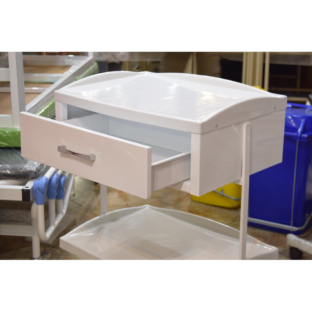 فروش و قیمت خرید ترالی یک کشو سه طبقه فایبر محصولی بسیار کاربردی برای انتقال وسایل و تجهیزات پزشکی و وسایل درمانی با بهترین قیمت با قابلیت ضد عفونی کردن و شستشو با محلول های ضد عفونی کننده در تجهیزات پزشکی آرمان درمان.