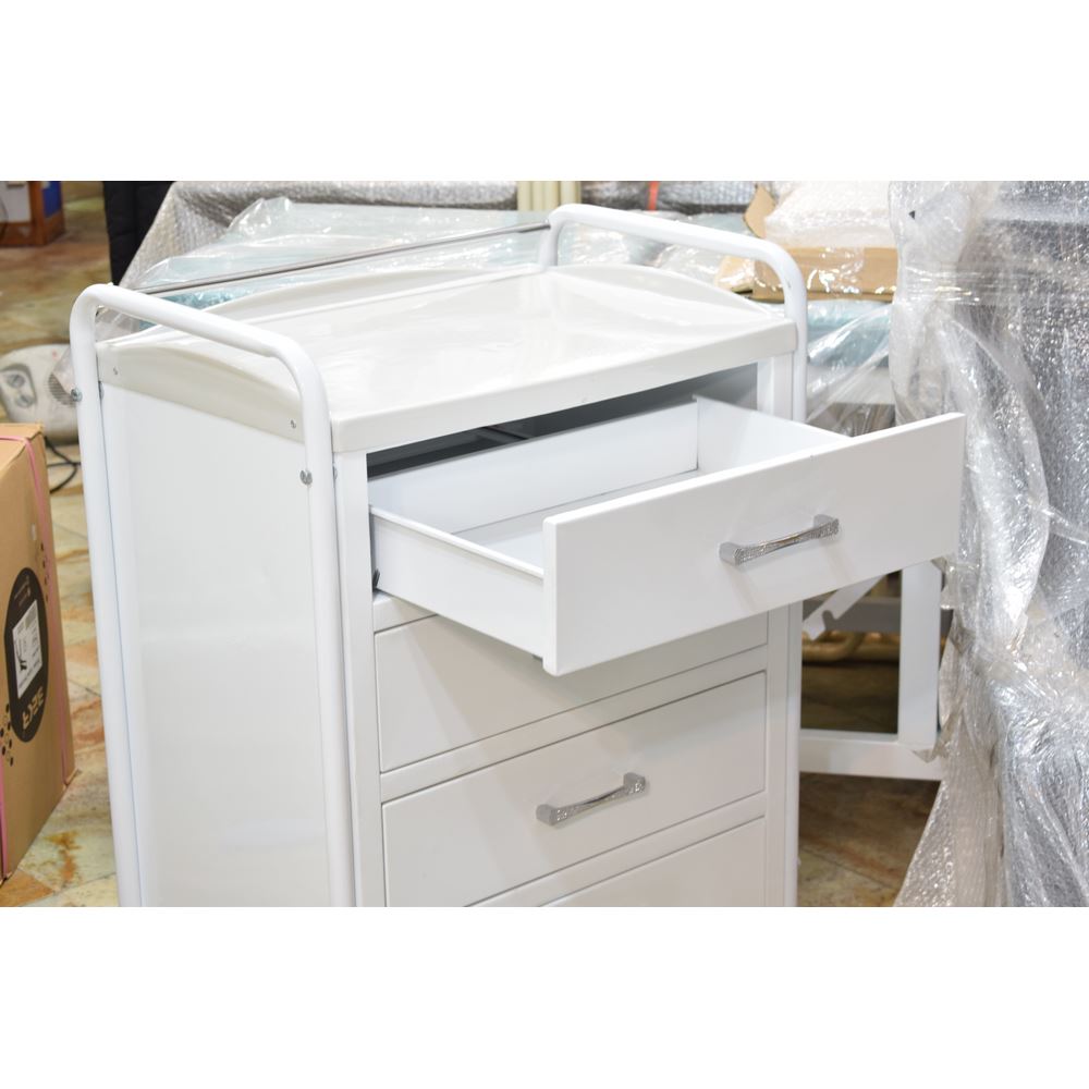 فروش و قیمت و خرید ترالی چهار کشو رویه فایبر در تجهیزات پزشکی آرمان درمان با چرخ های بسیار روان برای حمل وسایل و لوازم پزشکی جهت جا به جایی محصولات در اتاق های مراکز درمانی و بیمارستانی .